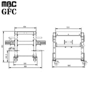 1.革新のスライドレール機構 :MBC×GFCコラボモデルのアジャスタブルダンベルに完全対応。独自のスライドレール構造を採用し、使用時にはレールを展開することで、可変操作に最適な高さと取り出しやすさを確保。未使用時はレールを収納し、スペースを圧迫しないコンパクトな運用が可能です。スライドレール自体の耐荷重も220kgあるため安心してご使用いただけます
