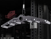 マルチグリップ構造により、使用者の体格や種目に合わせて最適なグリップ幅を選択でき、ケーブル種目・ランドマイン種目いずれにも対応します。