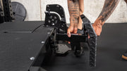 ROGUE ライノ ローロウアタッチメントは、キー ホール取付構造によりベルトスクワットからローイング動作へ瞬時に切り替え可能。