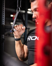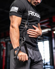 本製品は、ファンクショナルトレーナーや各種ケーブルマシンでの多様な種目に対応するよう設計された、高耐久・高汎用性のシングルハンドルアタッチメントです。
