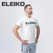 Tシャツの前面にはELEIKOのロゴがあり、左サイドの下には "Raise the Bar "の小さなタブがあります。