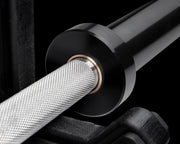 スタンプバーは、パワーバーの感触、機能、ラックへの収納性を求めているものの、最大荷重スリーブ長を必要としないジムオーナーにとって、省スペースで画期的な製品です。全長173.5cmのこのバーは、オハイオパワーバーより46.5cm短く、無荷重時の重量は6.4kg軽量です (13.6kg 対 20kg)。しかし、標準的な29mm径のシャフト、パワーリフティングのローレットマーク、そしてラックマウント対応のスリーブ間隔を備えているため、スタンプバーはアスリートがフルサイズのバーと同じようにトレーニングすることを可能にします。スペースは大幅に節約され、唯一減少するのはプレートの積載可能量です。