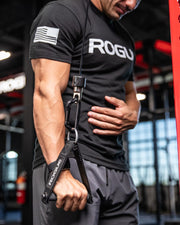 アメリカ製の幅1.5インチ(約3.8cm)のナイロンウェビングストラップと、溶接・亜鉛メッキ仕上げのDリングを組み合わせ、商業施設やホームジムなど、あらゆる環境で求められる耐久性と品質を備えています。