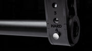 バーのキャンバー角度を選択するだけでなく、ユーザーは 2 番目のブラケット内でウェイト スリーブの位置も選択できます。この調整により、ウェイトの重心とリフターの背中のバーとの間の距離が決まり、リフトの難易度が自動的に増減します。4 つのオプションは、「イージー」(ブラケットの上部) から「ハード」(下部) までで、Rogue バージョンにはスリーブを所定の位置に固定するための新しい戻り止めピンが付属しています。合計 24 通りの設定の組み合わせがあるトランスフォーマー バーは、フォームを磨く熟練リフターにとっても、動きを学ぶ初心者にとっても、特に多用途なトレーニング ツールです。