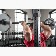 • スカルクラッシャーやトライセプスの動作がより実現しやすく、危険性が減少します。バーはJカップやセーフティスポッターアームにセットでき、失敗したレップ時のケガや床へのダメージを防ぐ手助けになります。
