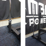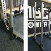 ※スクワットスタンドスタンダード180cmとMBCトレーニングコンボラックは支柱の上部が連結されていない構造上、ディップハンドルアタッチメントと殆どのプレートストレージをご使用いただけません。