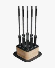 The Eleiko Vertical Bar Storage Rack is the perfect way to organize and protect your Eleiko bars. Precision crafted from high-quality wood, this storage rack is designed to safely hold eight bars in a space-saving vertical arrangement and protect the knurling and sleeves of your bars. The smooth wooden storage channel has bumpers at the base and chamfered stainless steel rings around the edges to protect your bars from scratches and damage, preserving the integrity of your bars and extending their lifespan.