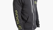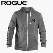 The Rogue Stencil Parka is made from eco-fleece and is made from a soft, streamlined cotton-poly-rayon blend with a ribbed hem and cuffs, a Rogue "R" on the chest and a Rogue logo on the right sleeve.