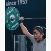 Eleikoの視覚的識別システム により、バーの選択が容易になります。エンドキャップとIDリングにはカラーコードが施されており、バーベルの種類を一目で判別可能です。さらに、リフター側に向いたフランジ部分には仕様がレーザー刻印されているため、どのような収納方法やラックの位置からでも迅速に確認できます。