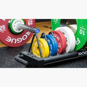 Each Rogue KG Change Plate features a bold matte finish with a rubberized exterior that grips the bar securely and minimizes noise and movement during lifts, and an embossed IWF logo on the underside.