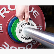 When athletes are pushing their limits and striving for PRs, every kilogram counts. Rogue's IWF Certified KG Change Plates are designed for this purpose, offering six weight ranges from 0.5KG to 5KG. With a uniform 50.40MM color opening diameter, all plates are compatible with standard Olympic barbells, and the green/yellow/blue/red/white color coding matches IWF standards for uniformity when loading.