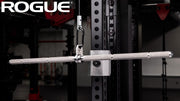 ROGUE ステンレス ストレート ラットバー は、長さが異なる2種類(20インチ:約51cm/40インチ:約102cm)のモデルを展開しており、Rogue Monster ラットプルダウンマシンをはじめ、ラックマウント式のSlingerや他社製の各種ケーブルマシンにも簡単に取り付け可能です。