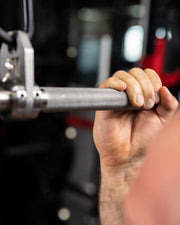 ローレットがバーの中央まで施されているため、クローズグリップでのプレスダウン動作にも対応します。