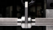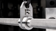 付属のスイベルタブは、厚さ3/8インチ(約9.5mm)のステンレススチールからレーザーカットされ、Rogueの「R」ロゴが刻印されています。さらに、角を滑らかにするためにタンブル処理を施し、専用設計のシャフトカラーでしっかりと固定しています。