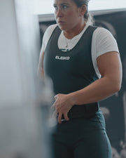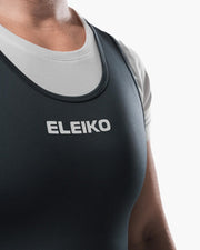The ELEIKO Powerlifting Singlet has flat seams, tightly woven tricot fabric and silicone grip tape on the thighs to help lifters perform at their best.