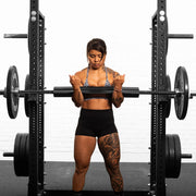 使い方は簡単で、ラックに設置されたバーベルにパッドを押し当てるだけで装着できます。29mm~25mmのオリンピックバーシャフトに対応しており、瞬時に快適な「スペシャリティバー」に変えることができます。